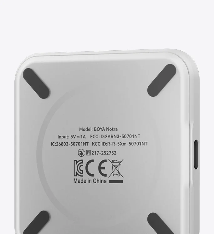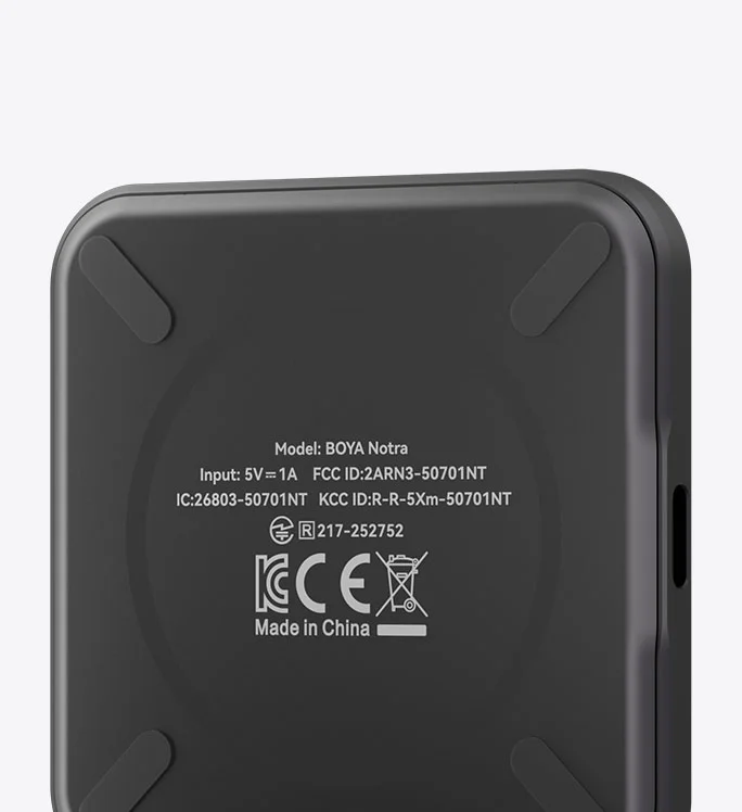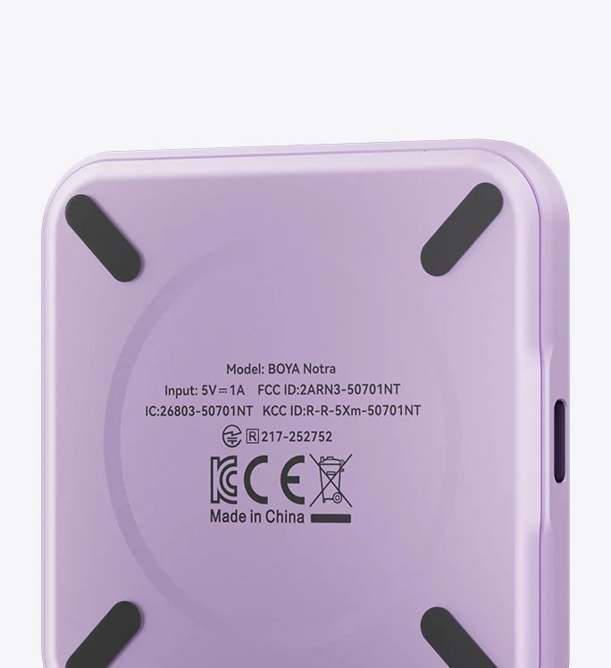 Smaller than a credit card, BOYA Notra is incredibly compact. Black and Silver remain timeless, while Cosmic Orange and Purple add a vivid pop of color to your life. Made from refined microblasted aluminum alloy, it feels impressively light yet solid in hand and stays cool even through long recording sessions.